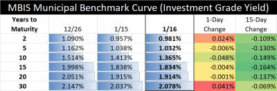 The interest rate table above illustrates recent changes in a sample of MBIS “investment grade” yields. Every issuer’s credit is different. For rates that may be applicable to your municipality, contact our Municipal Advisors.