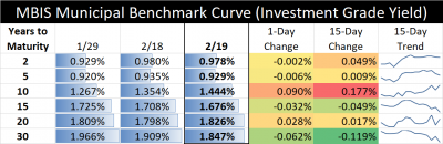 The interest rate table above illustrates recent changes in a sample of MBIS “investment grade” yields. Every issuer’s credit is different. For rates that may be applicable to your municipality, contact our Municipal Advisors.