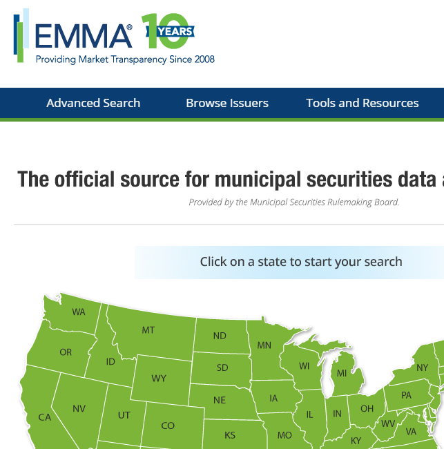 Normally this “continuing disclosure” involves preparing an “annual report” (which includes financial and operating data) and filing it with the Municipal Securities Rulemaking Board (“MSRB”) via the Electronic Municipal Market Access system (“EMMA”) in compliance with Rule 15c2-12 of the Securities and Exchange Commission (SEC).