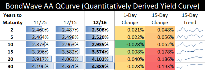 The interest rate table above illustrates recent changes in a sample of AA rated bond trades reported to the Municipal Securities Rulemaking Board’s EMMA® system. Every issuer’s credit is different, and other financing sources may be available. To obtain comprehensive Financial Advisory services for your local government, contact your Ranson Financial Municipal Advisor, Larry Kleeman, or Henry Schmidt.
