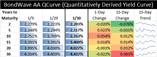 The interest rate table above illustrates recent changes in a sample of AA rated bond trades reported to the Municipal Securities Rulemaking Board’s EMMA® system. Every issuer’s credit is different, and other financing sources may be available. To obtain comprehensive Financial Advisory services for your local government, contact your Ranson Financial Municipal Advisor, Larry Kleeman, or Henry Schmidt.