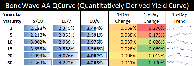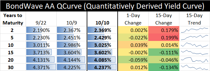 The interest rate table above illustrates recent changes in a sample of AA rated bond trades reported to the Municipal Securities Rulemaking Board’s EMMA® system. Every issuer’s credit is different, and other financing sources may be available. To obtain comprehensive Financial Advisory services for your local government, contact your Ranson Financial Municipal Advisor, Larry Kleeman, or Henry Schmidt.