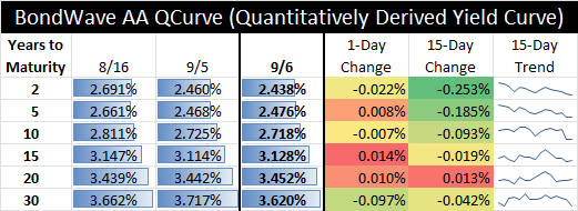 The interest rate table above illustrates recent changes in a sample of AA rated bond trades reported to the Municipal Securities Rulemaking Board’s EMMA® system. Every issuer’s credit is different, and other financing sources may be available. To obtain comprehensive Financial Advisory services for your local government, contact your Ranson Financial Municipal Advisor, Larry Kleeman, or Henry Schmidt.