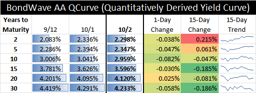 The interest rate table above illustrates recent changes in a sample of AA rated bond trades reported to the Municipal Securities Rulemaking Board’s EMMA® system. Every issuer’s credit is different, and other financing sources may be available. To obtain comprehensive Financial Advisory services for your local government, contact your Ranson Financial Municipal Advisor, Larry Kleeman, or Henry Schmidt.