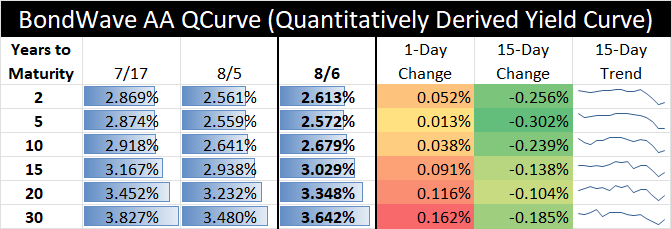 The interest rate table above illustrates recent changes in a sample of AA rated bond trades reported to the Municipal Securities Rulemaking Board’s EMMA® system. Every issuer’s credit is different, and other financing sources may be available. To obtain comprehensive Financial Advisory services for your local government, contact your Ranson Financial Municipal Advisor, Larry Kleeman, or Henry Schmidt.