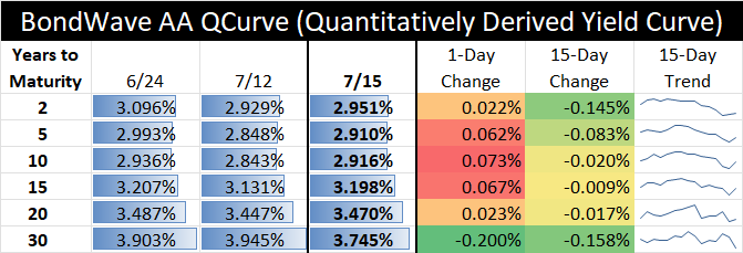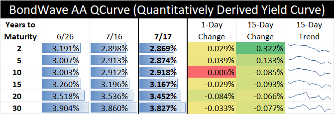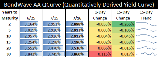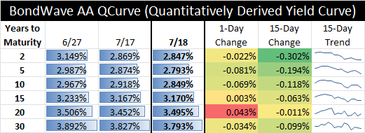 The interest rate table above illustrates recent changes in a sample of AA rated bond trades reported to the Municipal Securities Rulemaking Board’s EMMA® system. Every issuer’s credit is different, and other financing sources may be available. To obtain comprehensive Financial Advisory services for your local government, contact your Ranson Financial Municipal Advisor, Larry Kleeman, or Henry Schmidt.