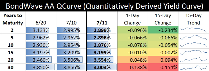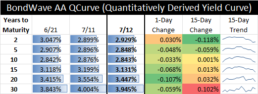 The interest rate table above illustrates recent changes in a sample of AA rated bond trades reported to the Municipal Securities Rulemaking Board’s EMMA® system. Every issuer’s credit is different, and other financing sources may be available. To obtain comprehensive Financial Advisory services for your local government, contact your Ranson Financial Municipal Advisor, Larry Kleeman, or Henry Schmidt.