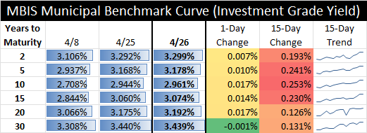 The interest rate table above illustrates recent changes in a sample of MBIS “investment grade” yields. Every issuer’s credit is different, and other financing sources may be available. To obtain comprehensive Financial Advisory services for your local government, contact your Ranson Financial Municipal Advisor, Larry Kleeman, or Henry Schmidt.