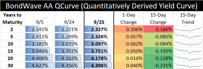 The interest rate table above illustrates recent changes in a sample of AA rated bond trades reported to the Municipal Securities Rulemaking Board’s EMMA® system. Every issuer’s credit is different, and other financing sources may be available. To obtain comprehensive Financial Advisory services for your local government, contact your Ranson Financial Municipal Advisor, Larry Kleeman, or Henry Schmidt.