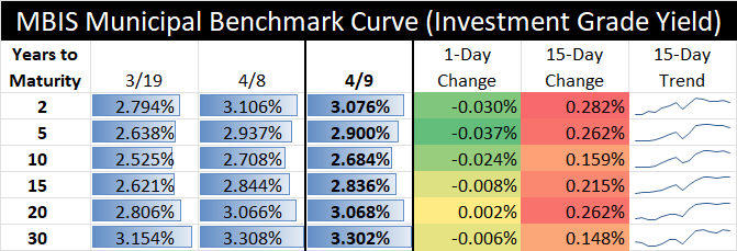 The interest rate table above illustrates recent changes in a sample of MBIS “investment grade” yields. Every issuer’s credit is different, and other financing sources may be available. To obtain comprehensive Financial Advisory services for your local government, contact your Ranson Financial Municipal Advisor, Larry Kleeman, or Henry Schmidt.
