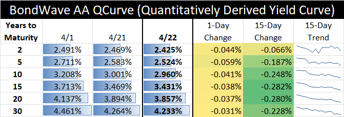 The interest rate table above illustrates recent changes in a sample of AA rated bond trades reported to the Municipal Securities Rulemaking Board’s EMMA® system. Every issuer’s credit is different, and other financing sources may be available. To obtain comprehensive Financial Advisory services for your local government, contact your Ranson Financial Municipal Advisor, Larry Kleeman, or Henry Schmidt.