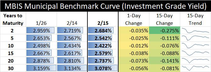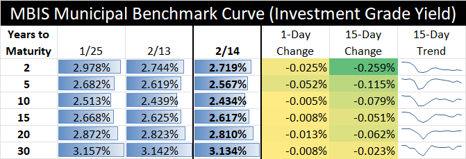 The interest rate table above illustrates recent changes in a sample of MBIS “investment grade” yields. Every issuer’s credit is different, and other financing sources may be available. To obtain comprehensive Financial Advisory services for your local government, contact your Ranson Financial Municipal Advisor, Larry Kleeman, or Henry Schmidt.