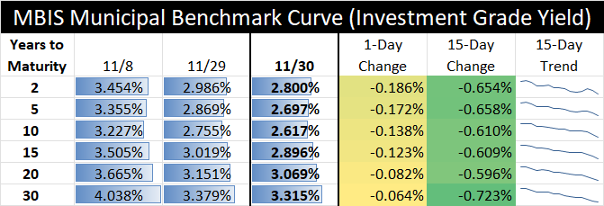 The interest rate table above illustrates recent changes in a sample of MBIS “investment grade” yields. Every issuer’s credit is different, and other financing sources may be available. To obtain comprehensive Financial Advisory services for your local government, contact your Ranson Financial Municipal Advisor, Larry Kleeman, or Henry Schmidt.