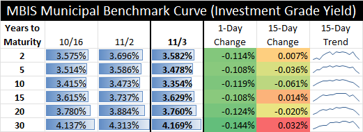 The interest rate table above illustrates recent changes in a sample of MBIS “investment grade” yields. Every issuer’s credit is different, and other financing sources may be available. To obtain comprehensive Financial Advisory services for your local government, contact your Ranson Financial Municipal Advisor, Larry Kleeman, or Henry Schmidt.