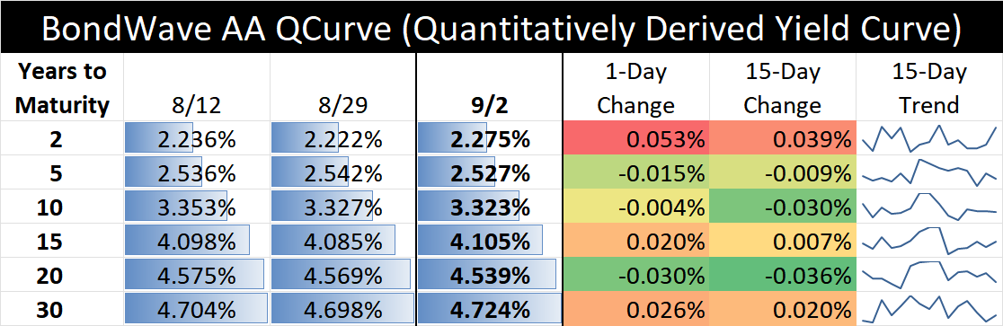 The interest rate table above illustrates recent changes in a sample of AA rated bond trades reported to the Municipal Securities Rulemaking Board’s EMMA® system. Every issuer’s credit is different, and other financing sources may be available. To obtain comprehensive Financial Advisory services for your local government, contact your Ranson Financial Municipal Advisor, Larry Kleeman, or Henry Schmidt.