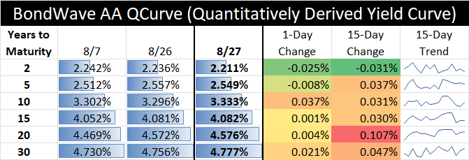 The interest rate table above illustrates recent changes in a sample of AA rated bond trades reported to the Municipal Securities Rulemaking Board’s EMMA® system. Every issuer’s credit is different, and other financing sources may be available. To obtain comprehensive Financial Advisory services for your local government, contact your Ranson Financial Municipal Advisor, Larry Kleeman, or Henry Schmidt.