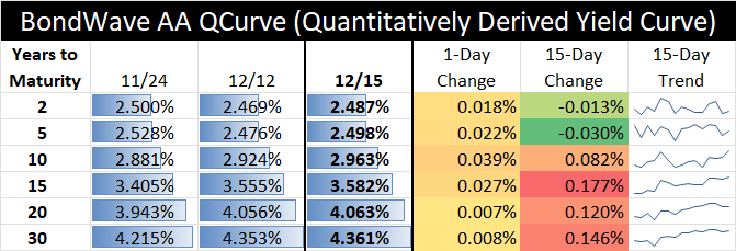 The interest rate table above illustrates recent changes in a sample of AA rated bond trades reported to the Municipal Securities Rulemaking Board’s EMMA® system. Every issuer’s credit is different, and other financing sources may be available. To obtain comprehensive Financial Advisory services for your local government, contact your Ranson Financial Municipal Advisor, Larry Kleeman, or Henry Schmidt.