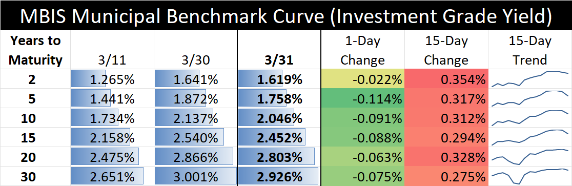 Municipal Bond Trends for March 31, 2022